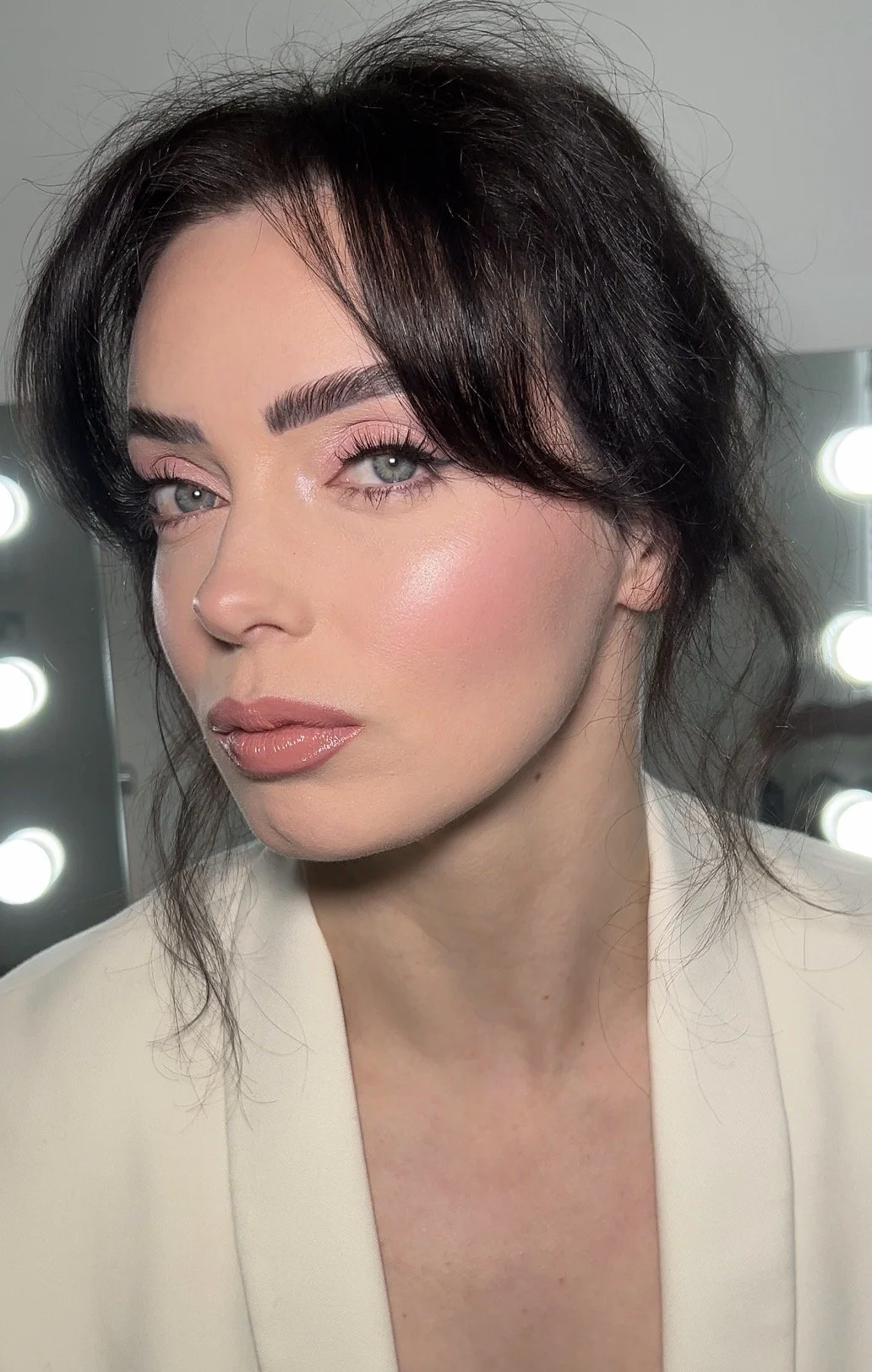 Glowing soft glam in neutral tones